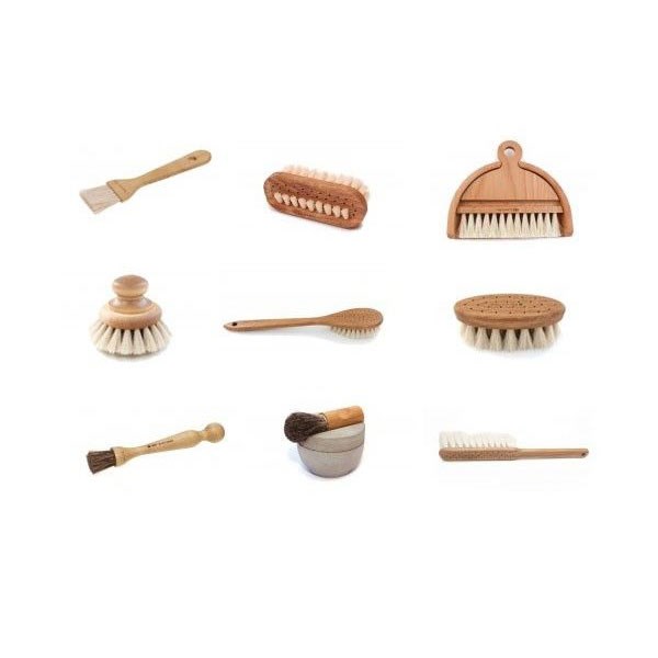 Iris Hantverk Table brush £30 Bath brush with handle £22 Porch broom £59 Dishbrush £18 Nail brush £12.25 Bath brush with knob £25 Dough scraper £17.50 Pan brush £18